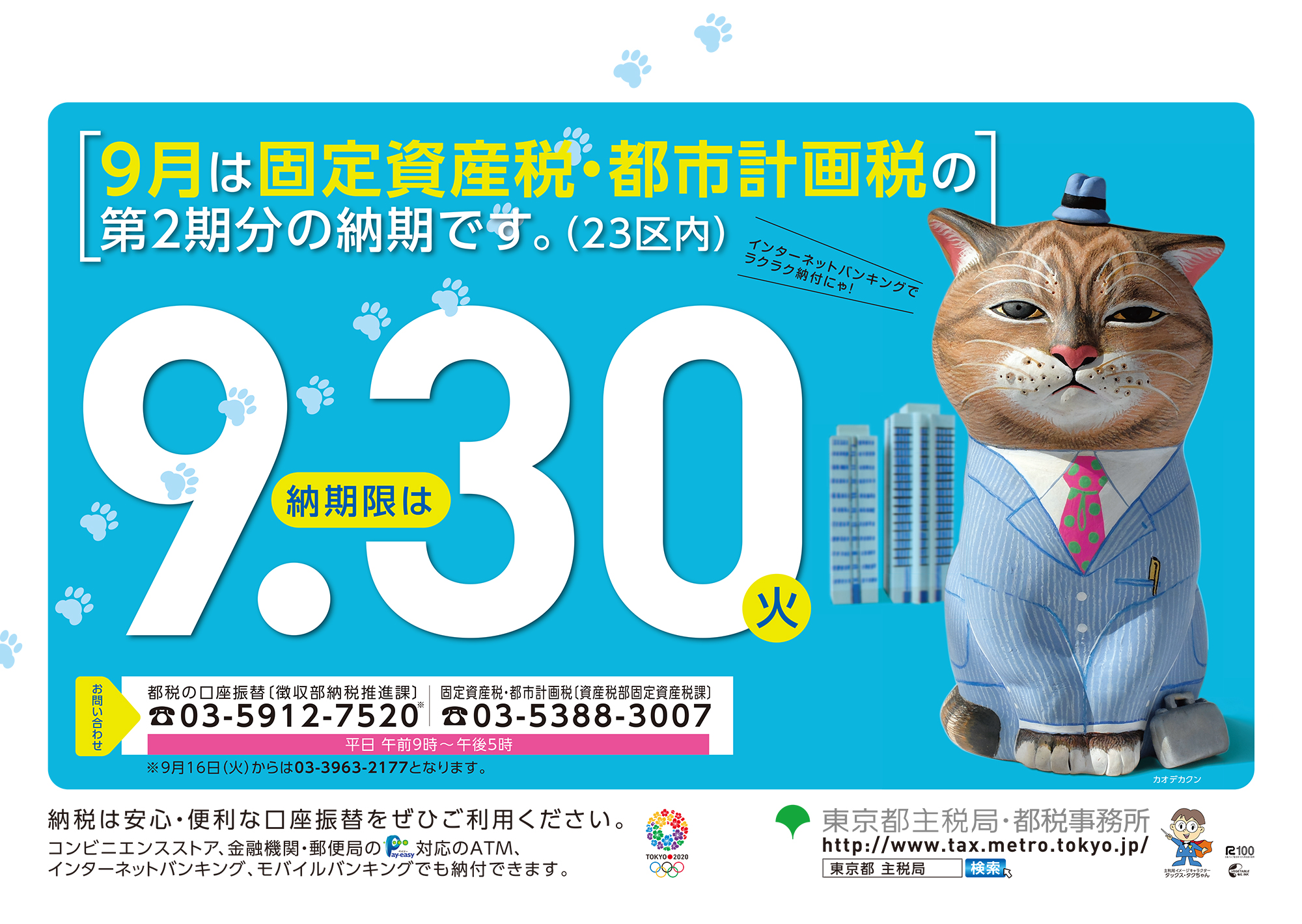 9月は固定資産税・都市計画税の第2期分の納期です。(23区内)