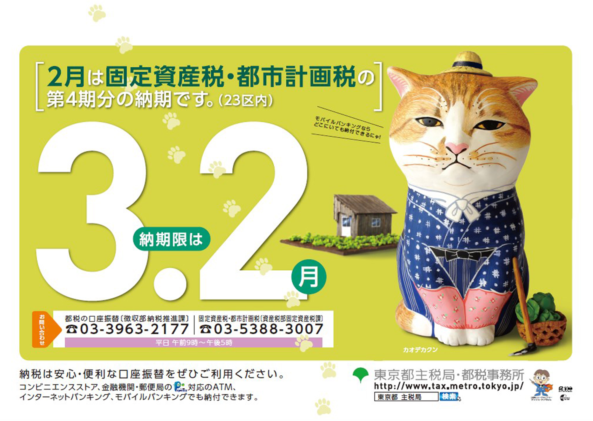 2月は固定資産税・都市計画税の第4期分の納期です。(23区内)
