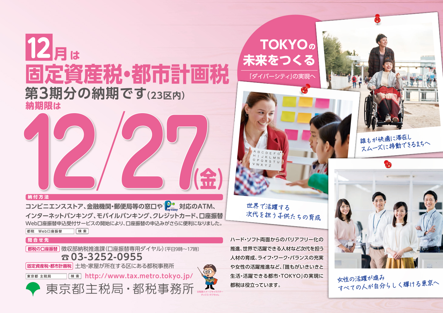 12月は固定資産税・都市計画税第3期分の納期です。