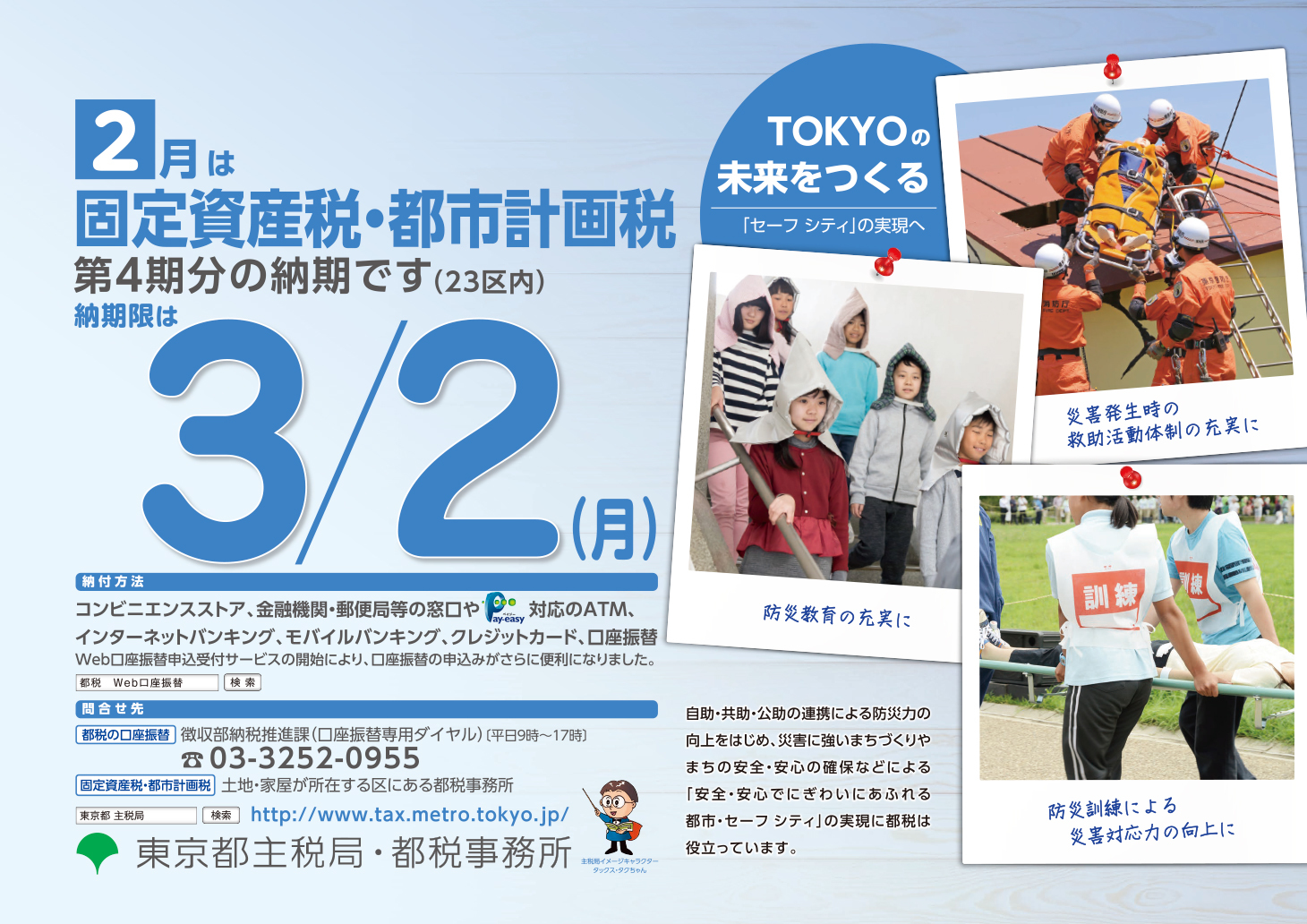 2月は固定資産税・都市計画税第4期分の納期です。