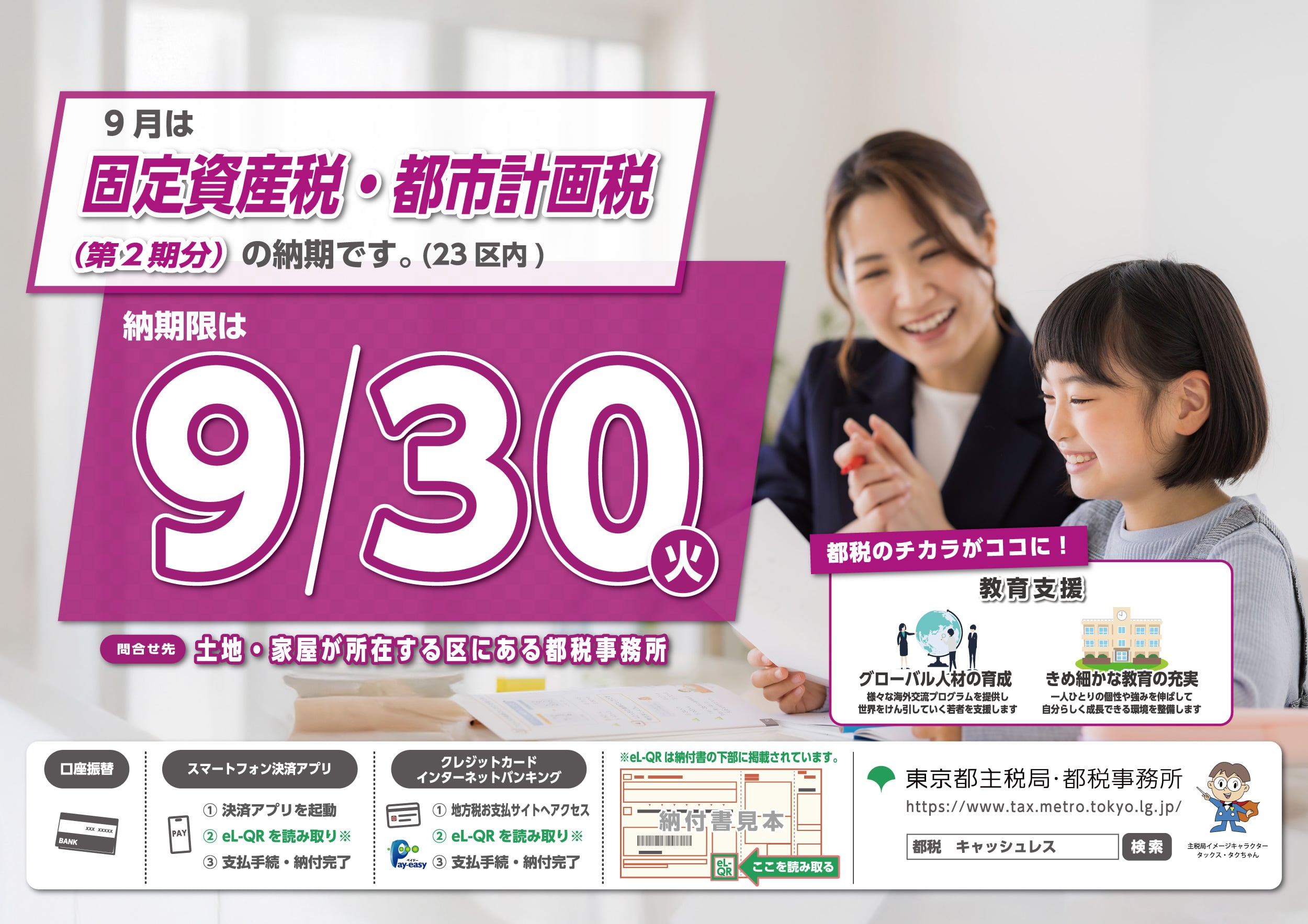 9月は固定資産税・都市計画税(第2期分)の納期です。