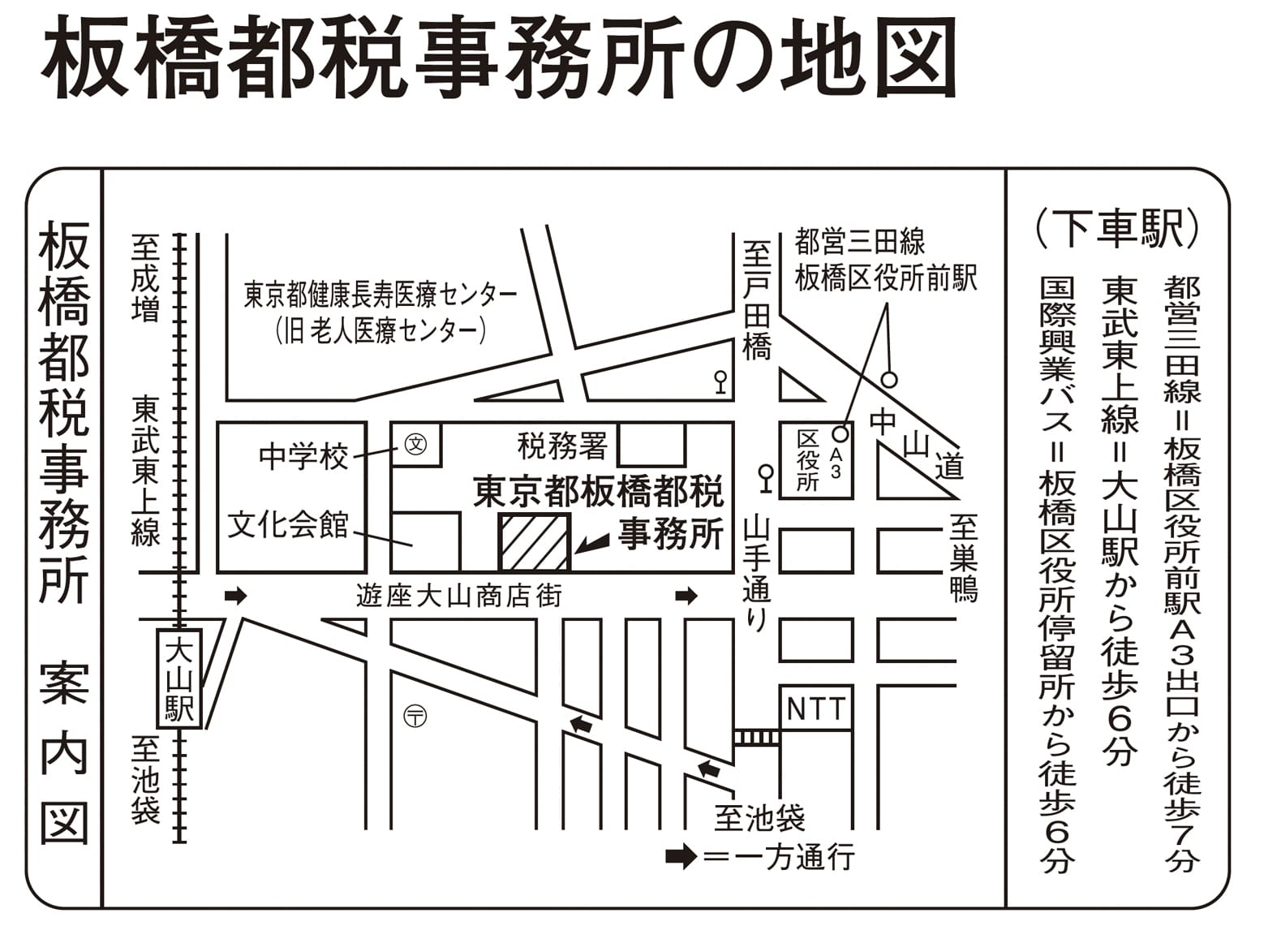 都営三田線:板橋区役所前駅A3出口から徒歩7分